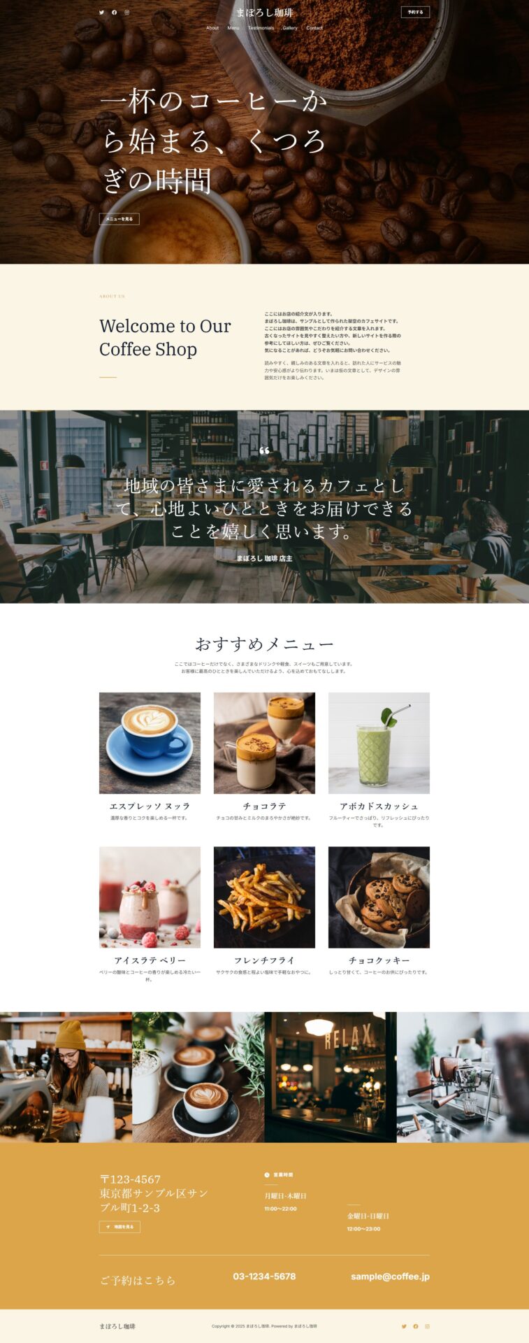 まぼろし珈琲は、架空のカフェをもとに作られたサンプルサイトです。